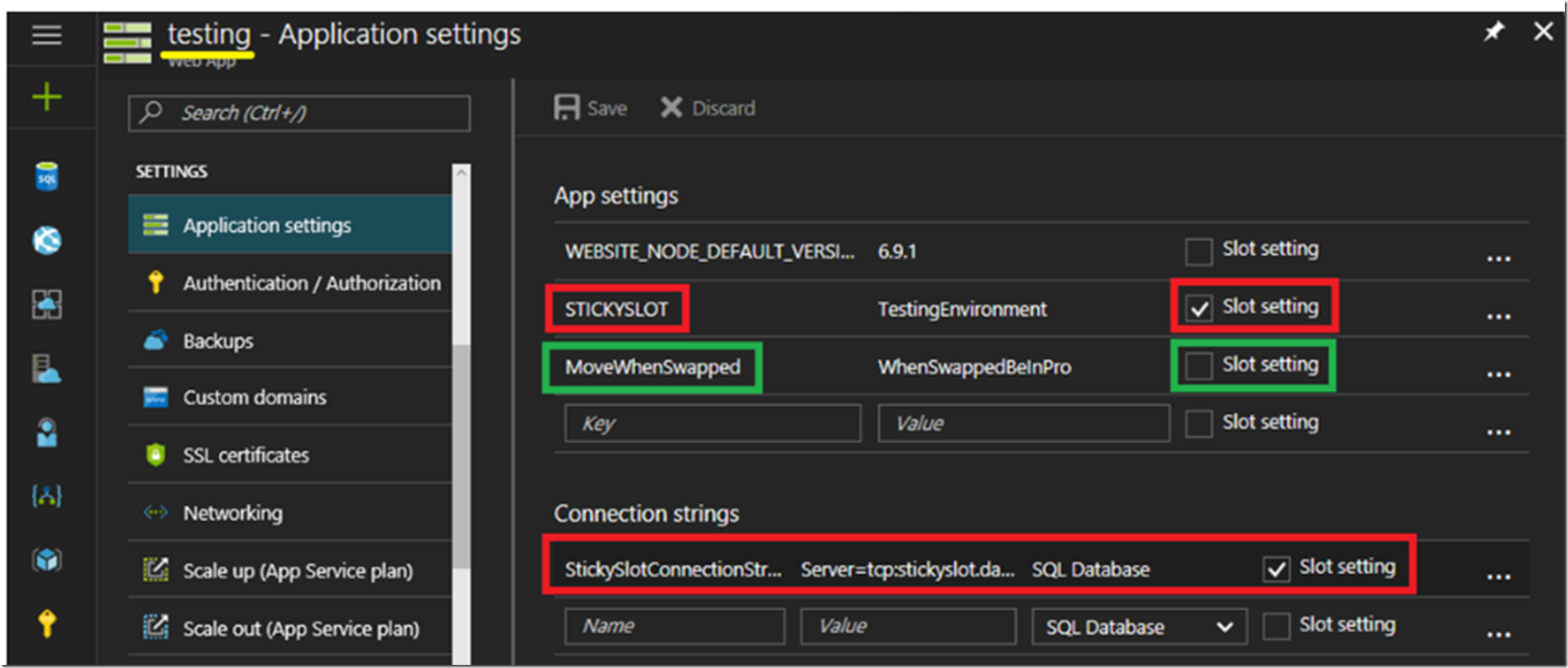 Figure 5, sticky slots Azure App Service Web App App Settings and Connection strings