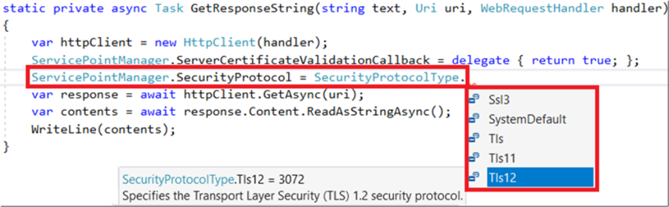 Figure 1, how to configure SSL / TLS protocol from code