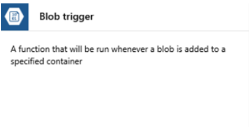 When you want an Azure Function to execute when a blob is added to a specified storage container use this trigger type which is discussed in this lab. (use this binding type for small working sets that are not time critical) Here are some articles which I wrote about WebJobs/Blob storage: